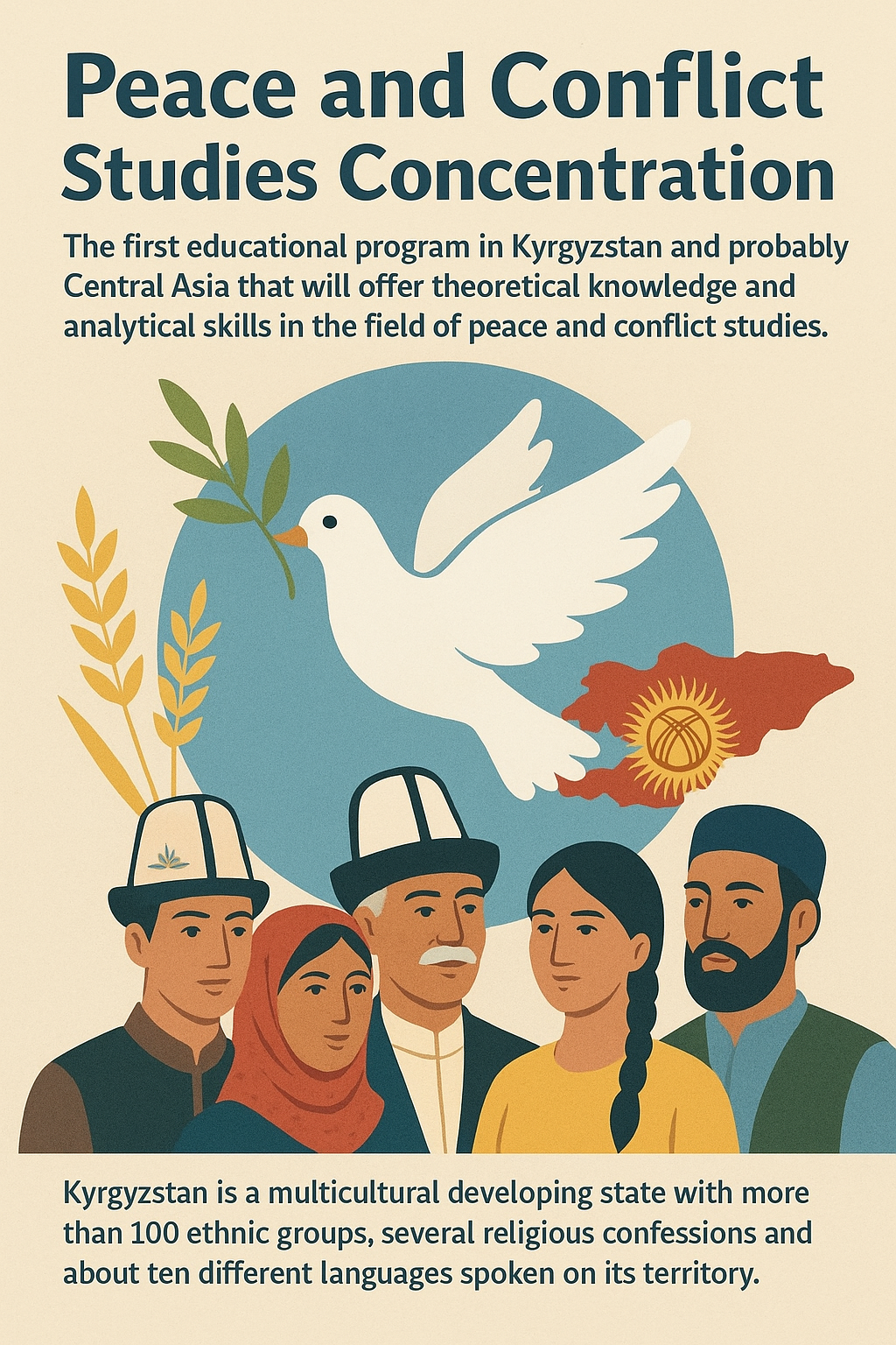 The Peace and Conflict Studies Concentration will be the first educational program in Kyrgyzstan and probably Central Asia that will offer theoretical knowledge and analytical skills in the field of peace and conflict studies. It will be an interdisciplinary concentration based on the courses taught by the existing educational programs in the Division of Social Sciences such as Anthropology, Psychology, Sociology, International and Comparative Politics as well as International and Business Law. Kyrgyzstan is a multicultural developing state with more than 100 ethnic groups, several religious confessions and about ten different languages spoken on its territory. The relationships between those groups are not always peaceful and friendly but sometimes tense and even violent. The interethnic clashes between Kyrgyz and Uzbeks in 1990 and 2010, frequent border conflicts between the villagers of Kyrgyzstan and Tajikistan, religious tensions between Muslims and other traditional and non-traditional confessions, have resulted in high demand for opening peace studies programs that will train students in the culture of peace and bring about positive changes in the society. Peace and Conflict Studies Concentration will offer the education that can help students master theoretical knowledge and analytical skills to be competitive in the local job market. Government officials and policemen, social workers and teachers trained in traditional national and local educational institutions usually lack the appropriate knowledge and skills to understand cultural, social and political forces that lie behind intergroup and interpersonal conflicts threatening harmony and stability of the society, and fail to respond to the challenges posed by them in a nonviolent and constructive way. |